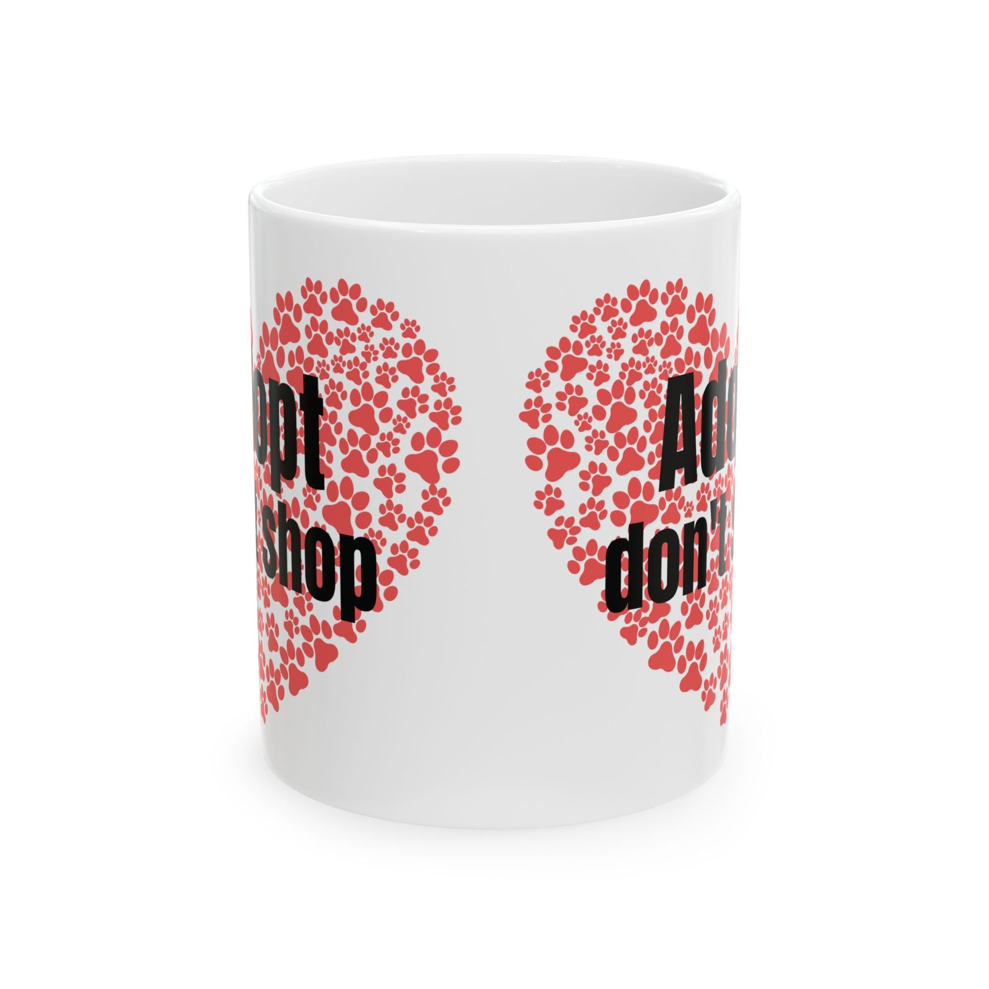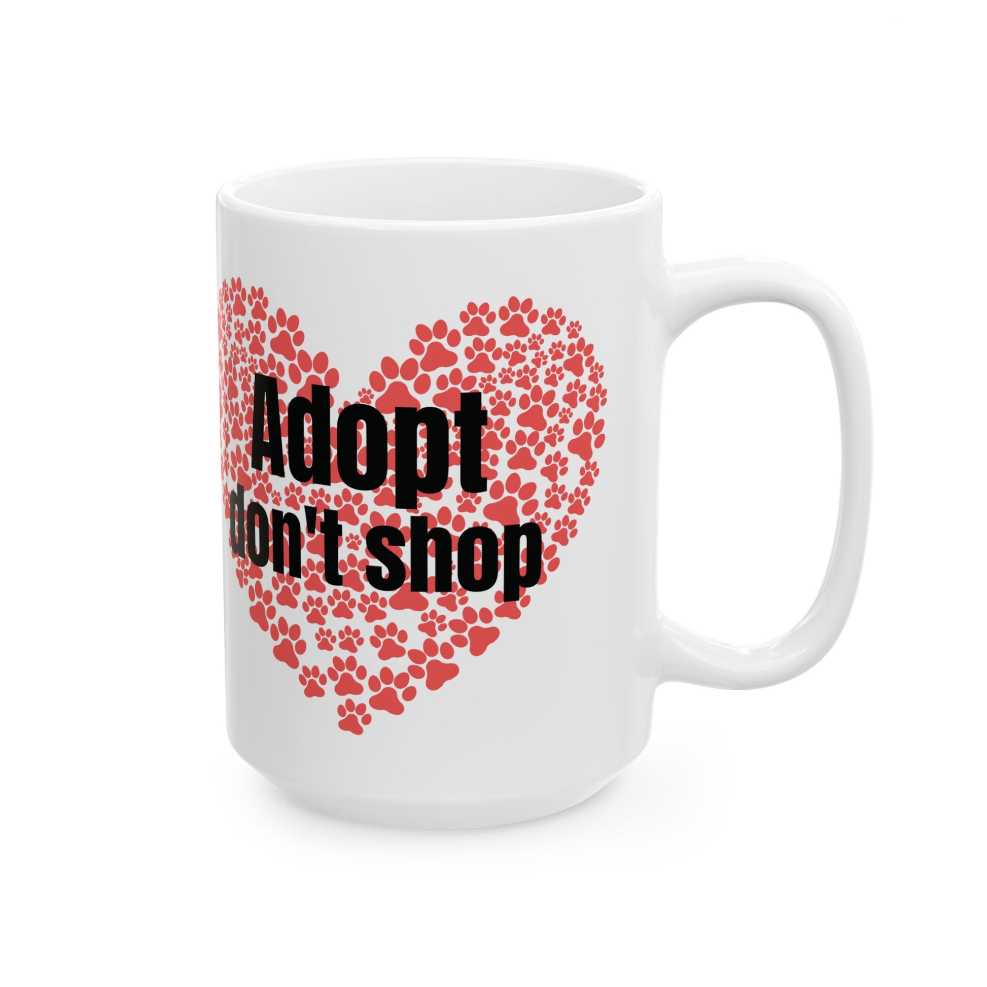 This Adopt Don't Shop Mug is available in 15oz and 11oz sizes, perfect for animal lovers who are passionate about pet adoption. The glossy ceramic finish and vibrant colors make it a standout piece in any kitchen. Microwave and dishwasher safe for convenience. A great gift for pet owners, animal shelter volunteers, and those who support animal welfare causes. Perfect for holidays like National Adopt a Shelter Pet Day.
