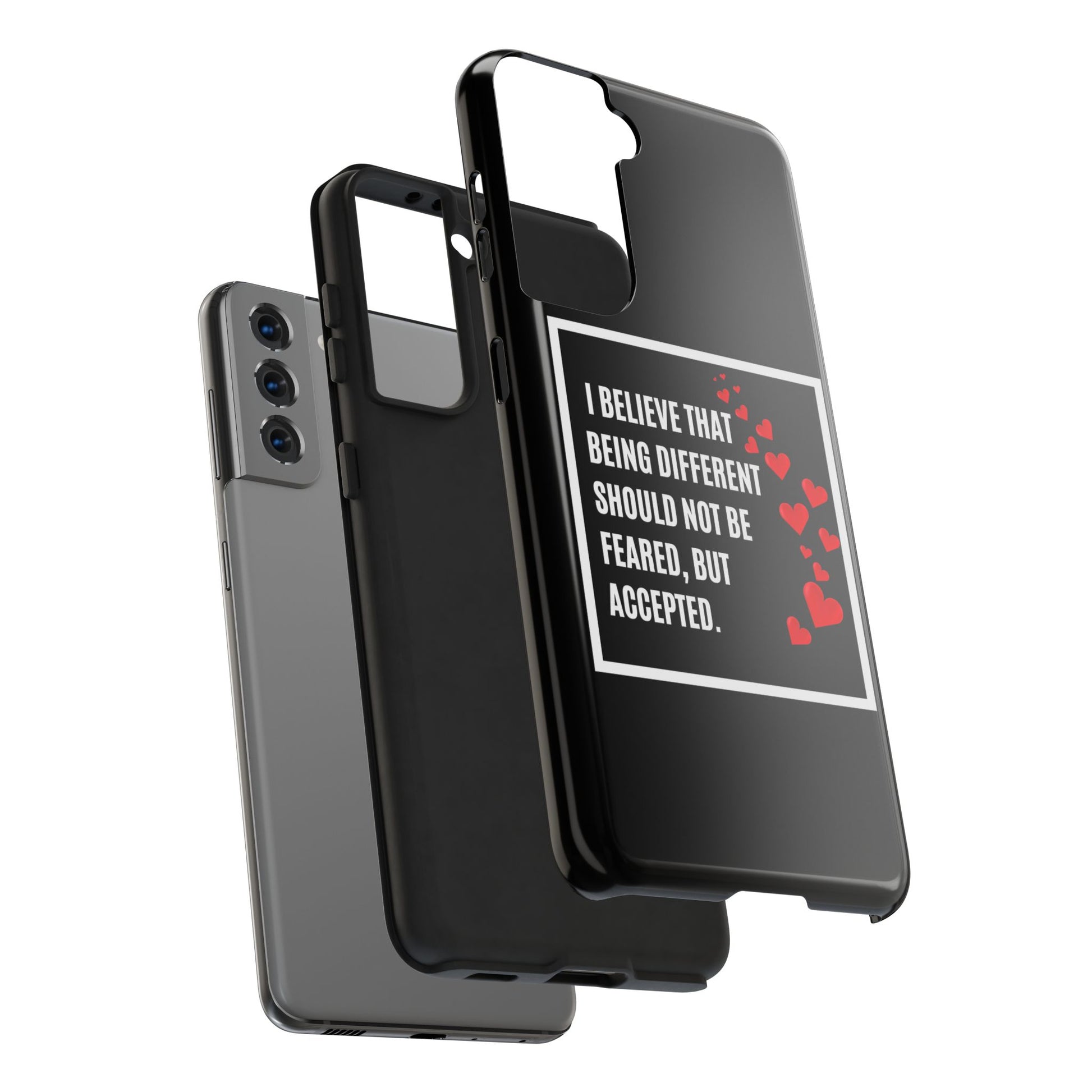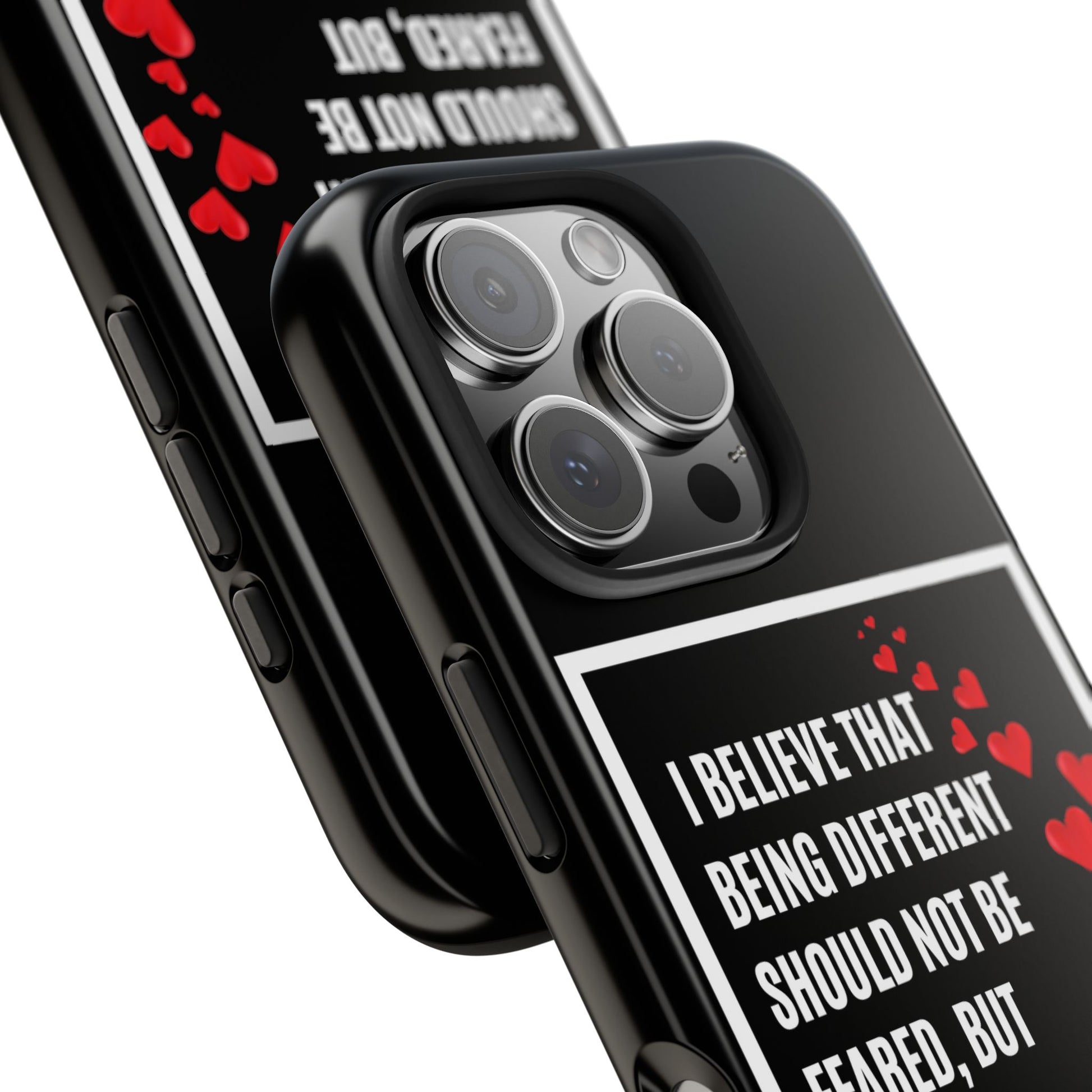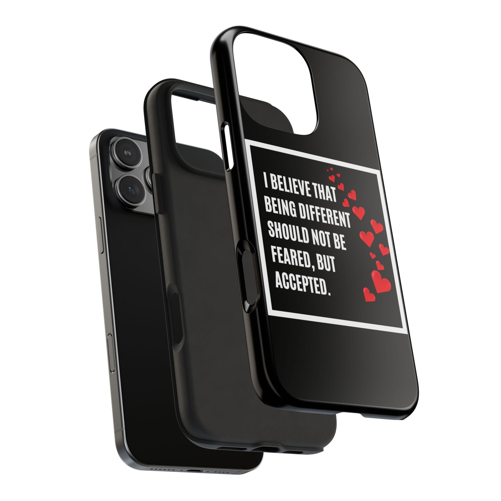 Introducing our stunning Tough Phone Cases, designed to bring both style and protection to your device. These cases embody a vibrant atmosphere that celebrates individuality and uniqueness. With a bold design featuring a heart motif and an empowering message, this product radiates an inclusive vibe, perfect for those who believe in acceptance and diversity.