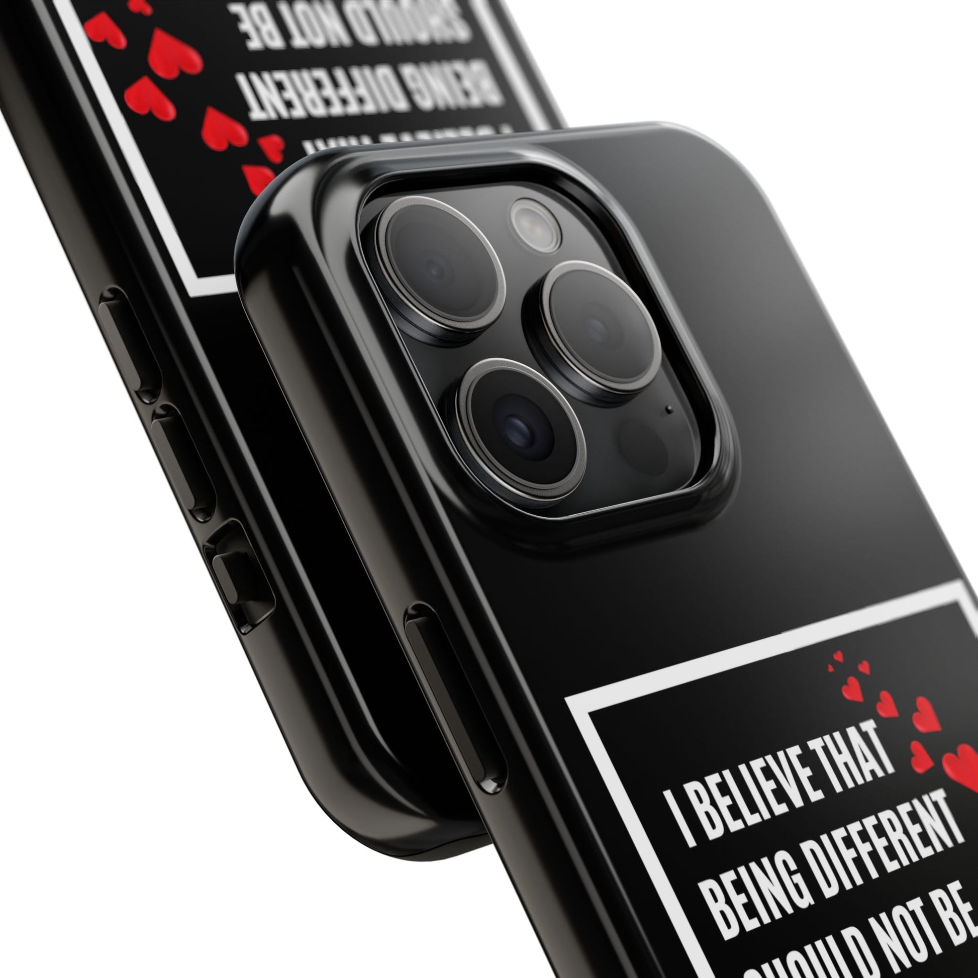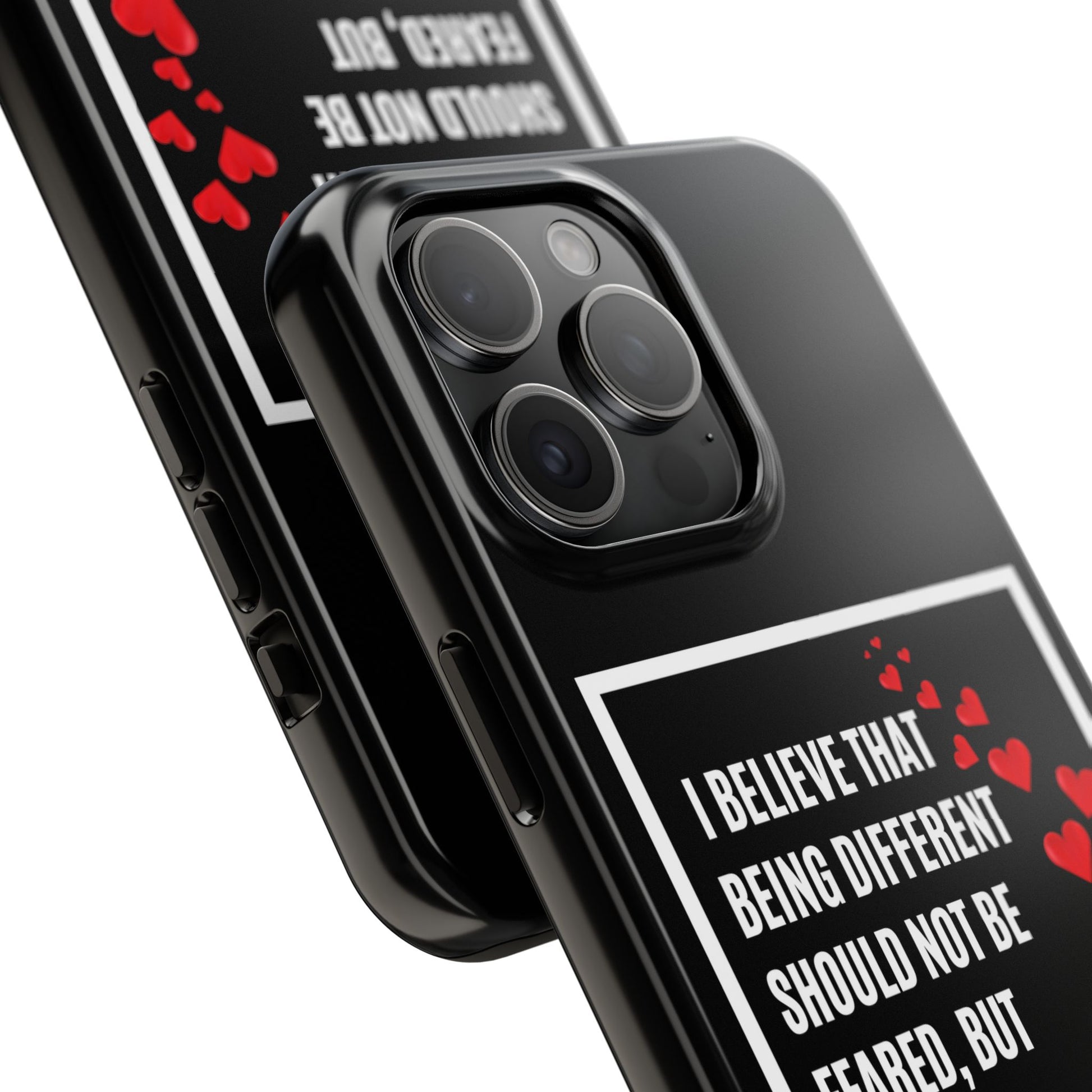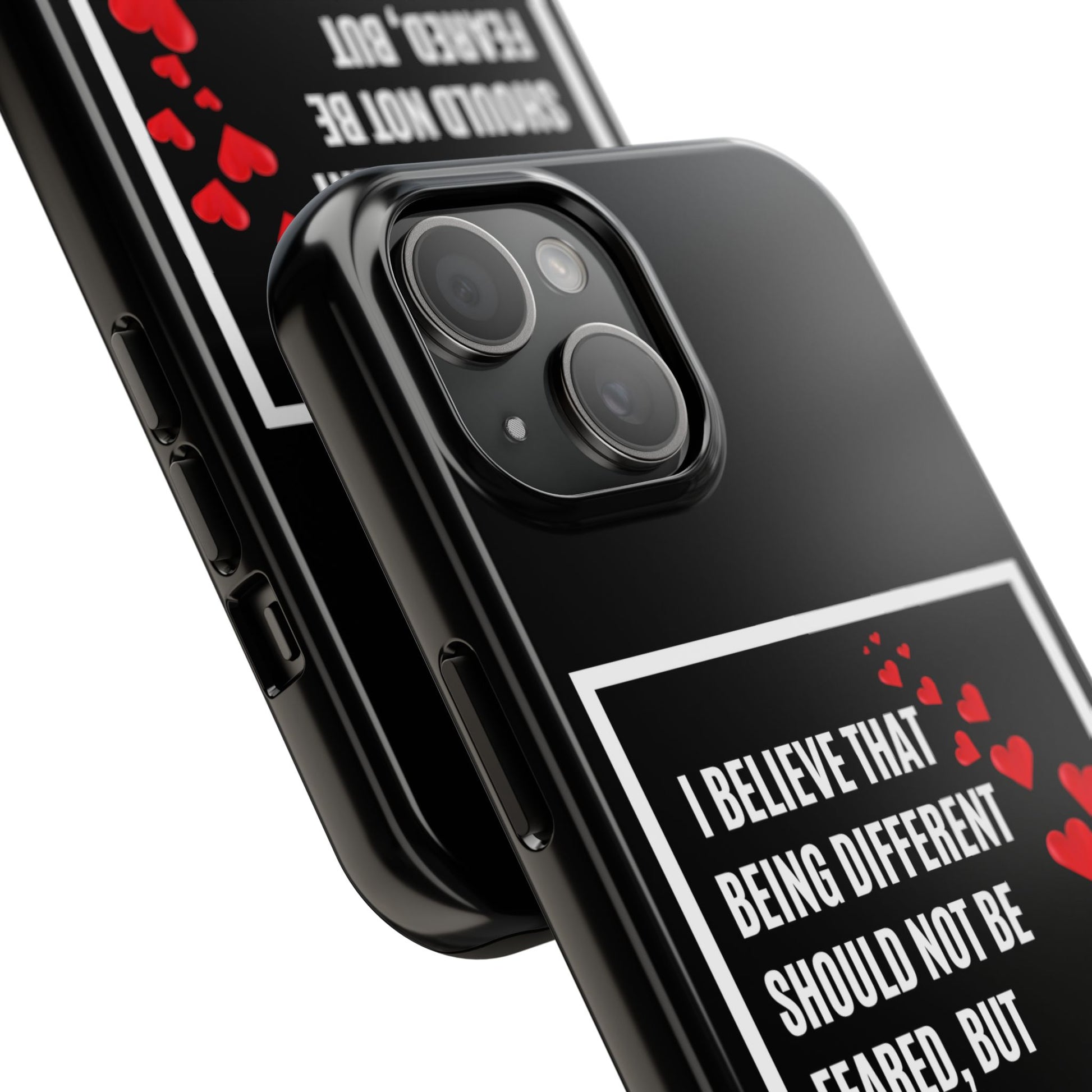 Introducing our stunning Tough Phone Cases, designed to bring both style and protection to your device. These cases embody a vibrant atmosphere that celebrates individuality and uniqueness. With a bold design featuring a heart motif and an empowering message, this product radiates an inclusive vibe, perfect for those who believe in acceptance and diversity.